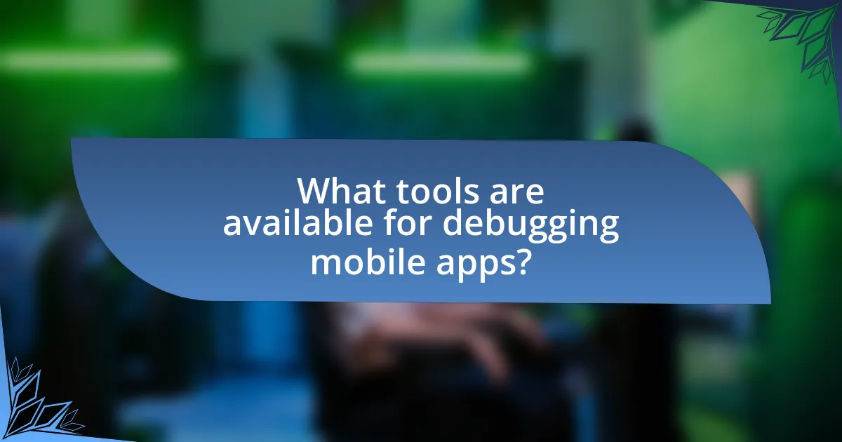 Tools available for debugging mobile apps include Android Studio, Xcode, and Visual Studio. Android Studio provides a comprehensive suite of debugging tools for Android applications, including a powerful debugger, memory profiler, and network profiler. Xcode offers similar capabilities for iOS apps, featuring a debugger, performance analysis tools, and a view debugger. Visual Studio supports cross-platform mobile development and includes debugging tools for both Android and iOS applications. These tools are widely recognized in the industry for their effectiveness in identifying and resolving issues during mobile app development.
